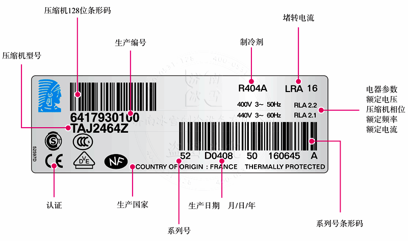 Tecumseh/泰康壓縮機銘牌說(shuō)明:
